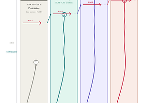 AI capability is not a single curve; it is four overlapping paradigms, each with distinct inputs, mechanisms, walls, and economic structures.