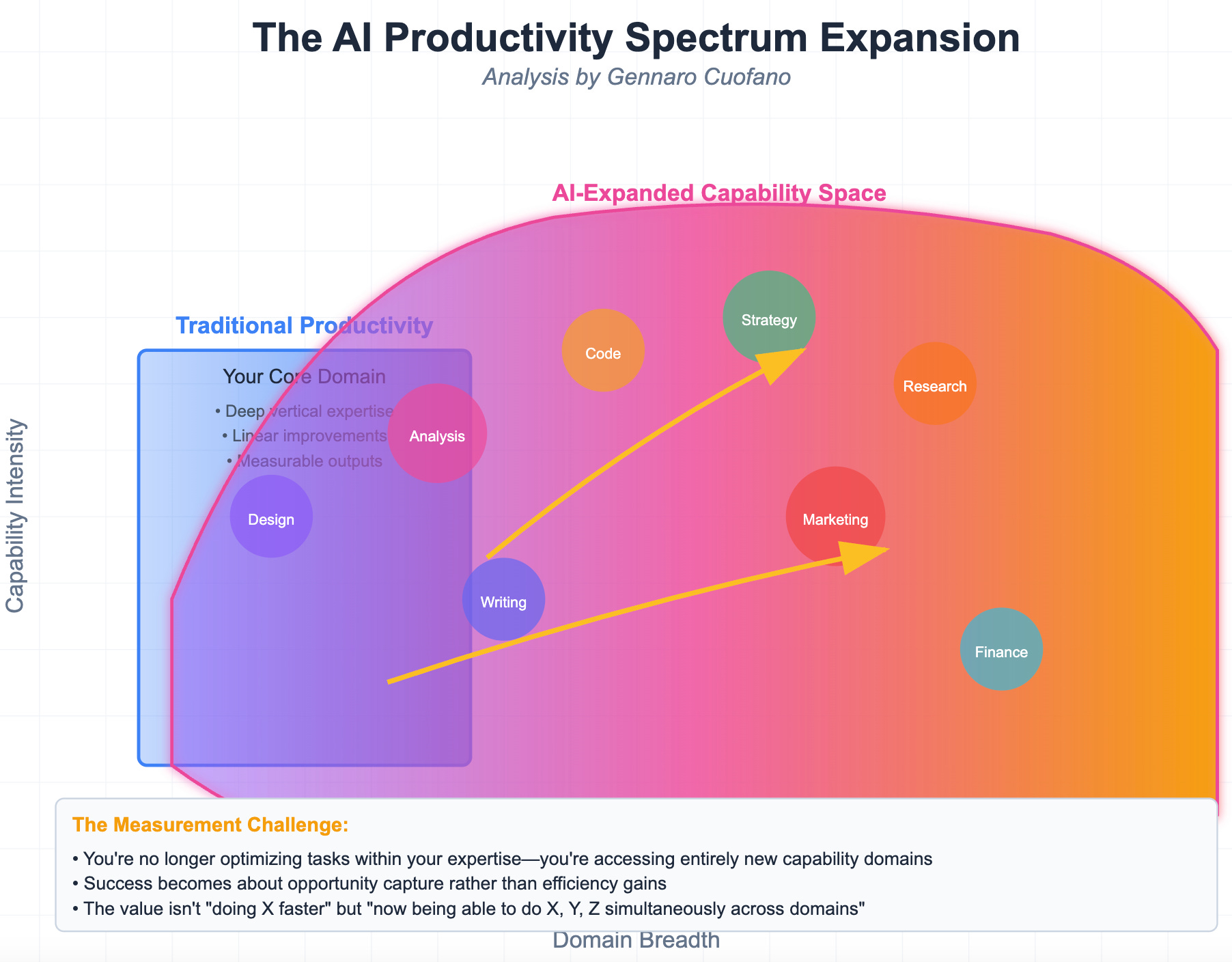 AI doesn't just accelerate what you already do—it fundamentally expands the spectrum of what you're capable of doing.