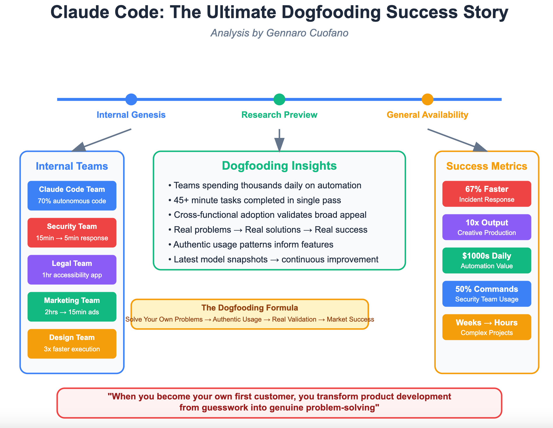 But Claude Code's most remarkable aspect isn't its technical capabilities—it's how it exemplifies the perfect dogfooding success story.