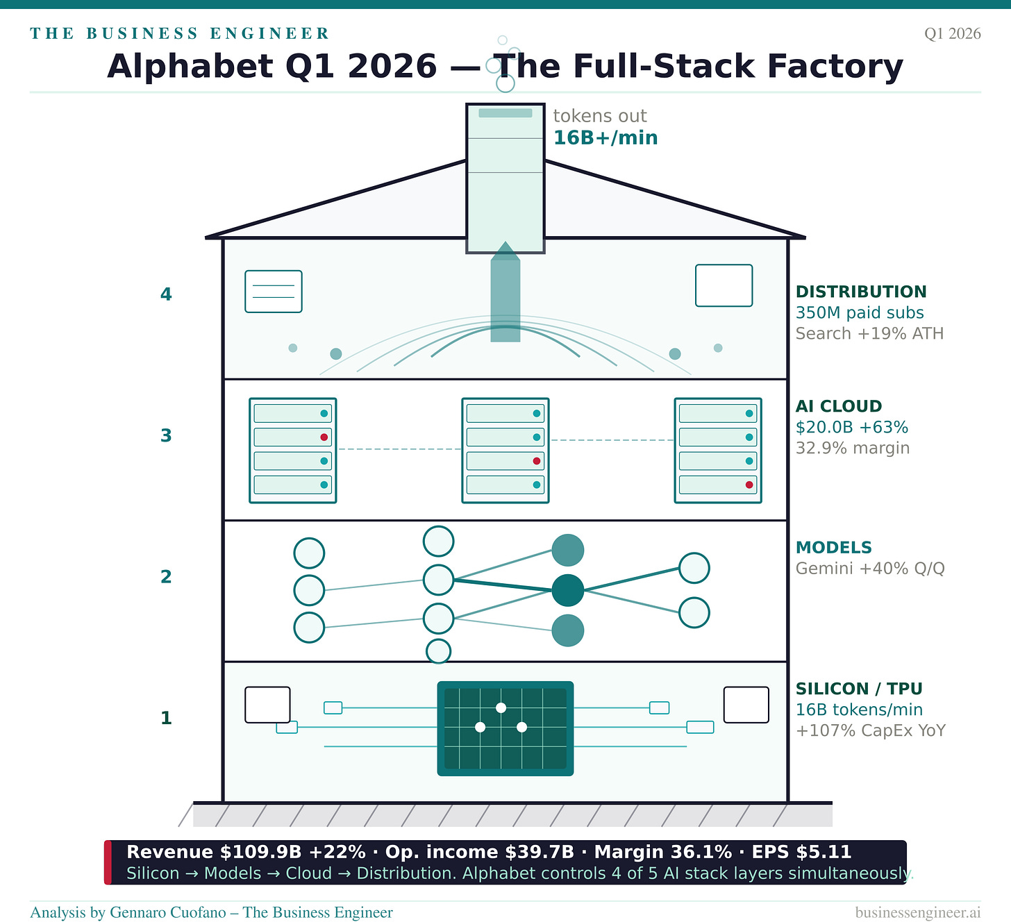 Alphabet’s Q1 2026 results deliver the most concentrated single-quarter challenge to both simultaneously.