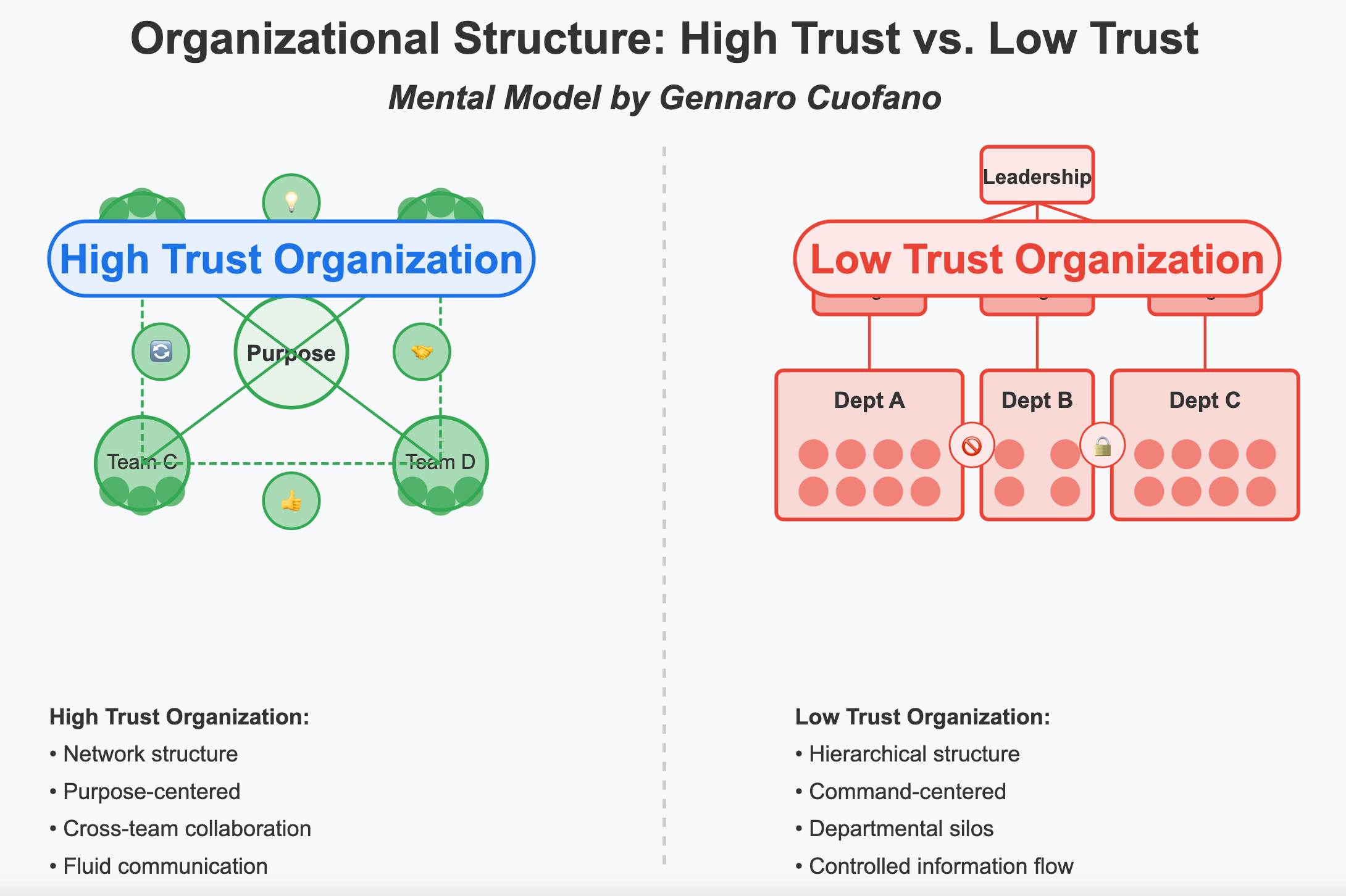 High-trust and low-trust organizations develop distinctly different architectures that reflect their underlying values and assumptions about human behavior.