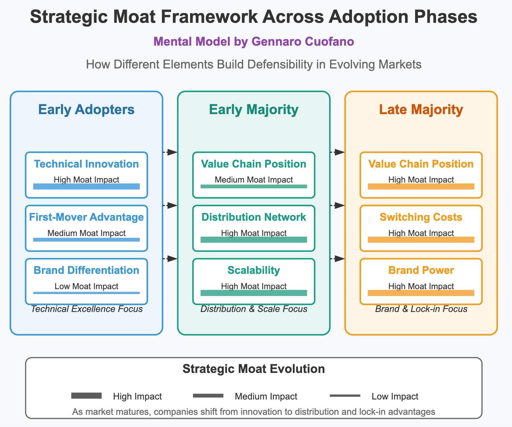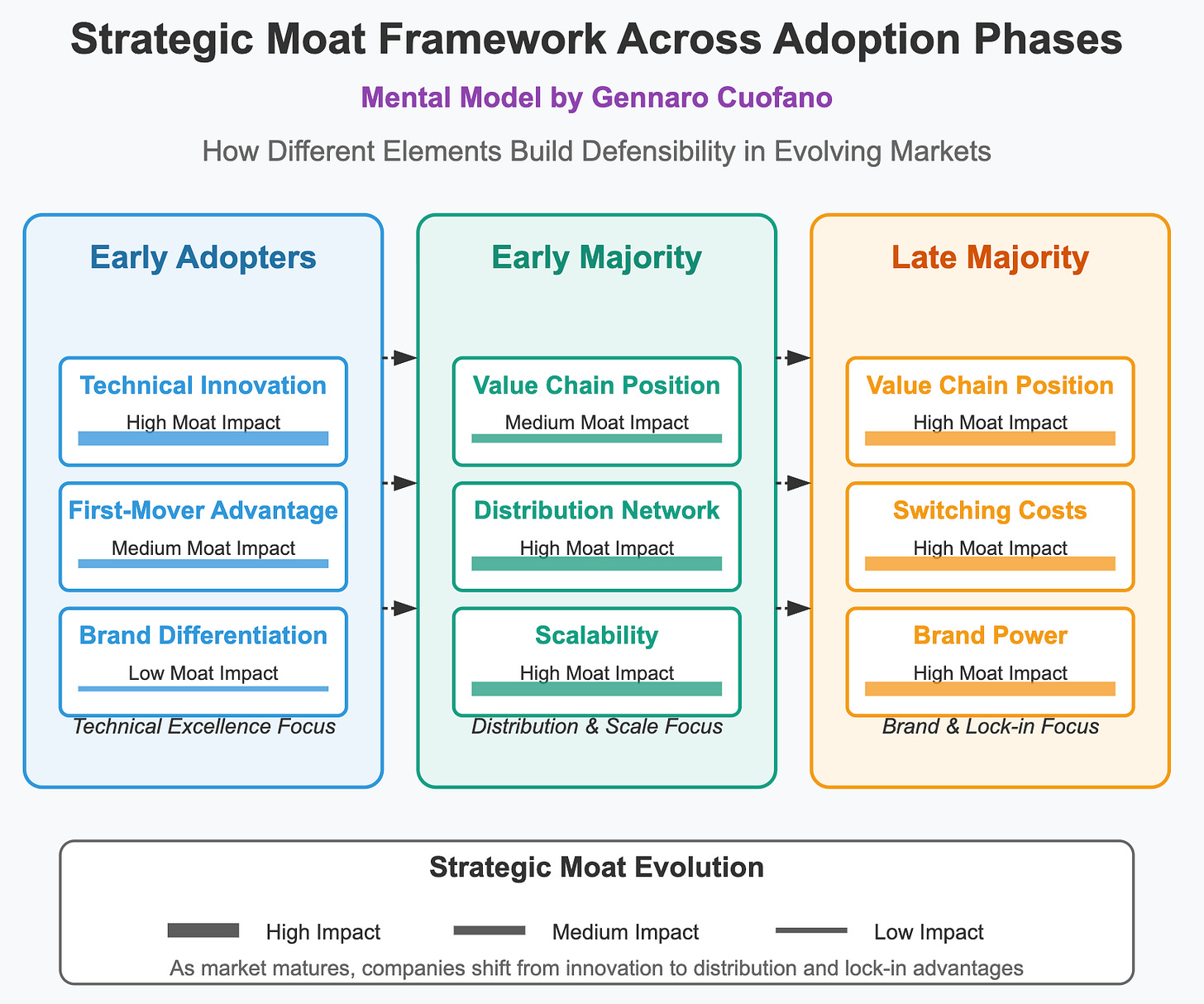 The evolution of competitive advantage in technology markets follows predictable general patterns as products move from early adopters to mainstream users.