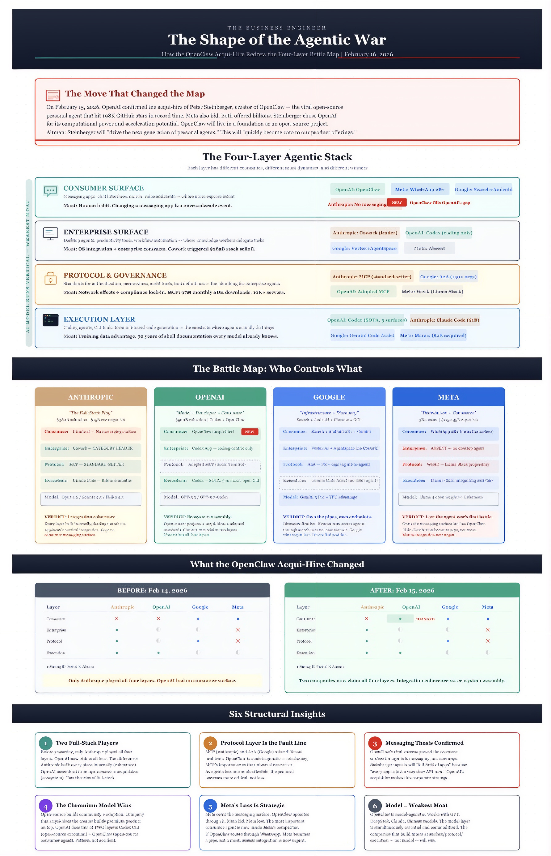 This single move redrew the competitive map of the agentic economy, giving OpenAI a consumer surface it never had and validating the thesis that the agent interface is messaging, not new apps. Here is the updated battle map.
