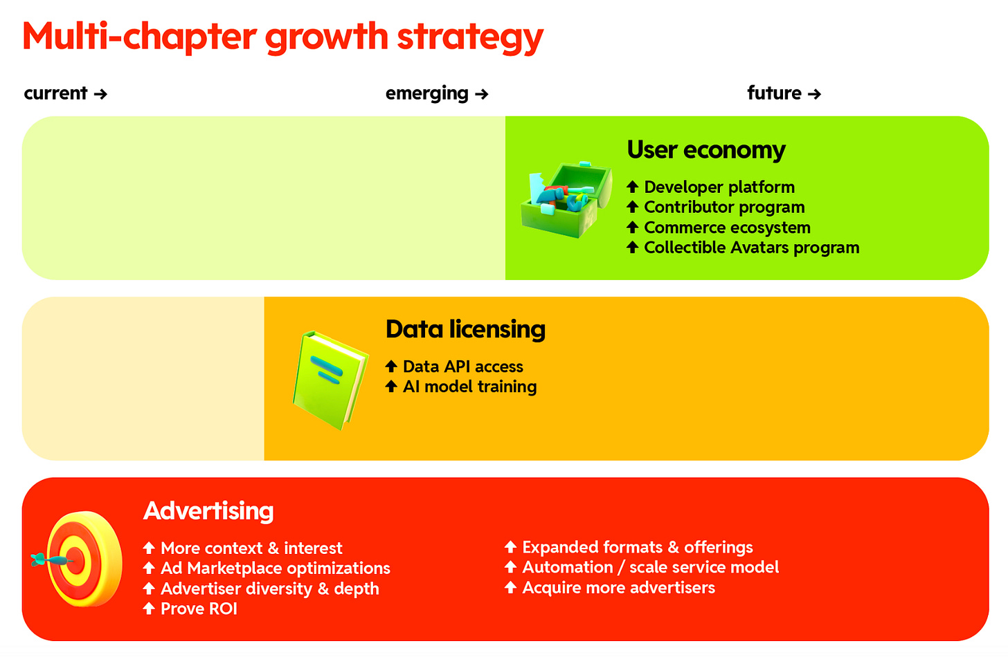 In its pre-IPO, Reddit emphasized a multi-chapter growth strategy, where data licensing (for generative AI) will play a critical role in Reddit's future business model.