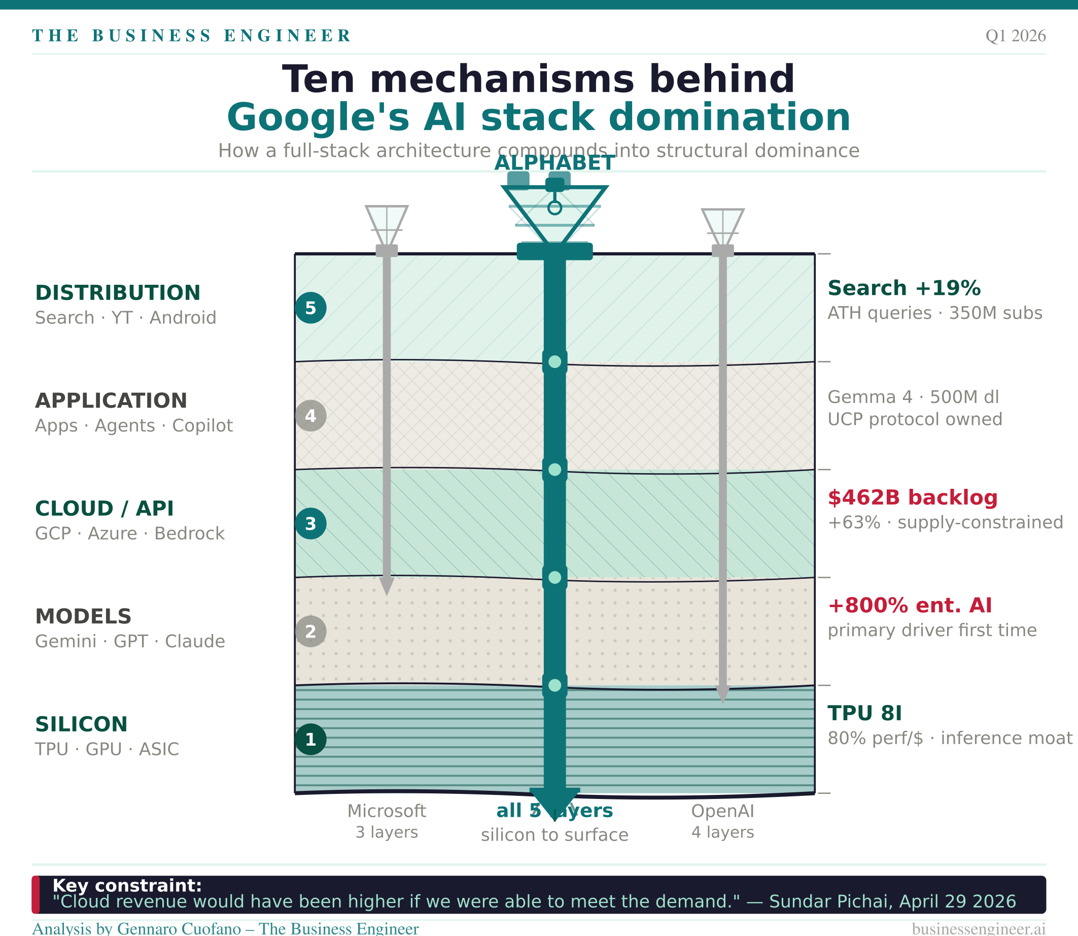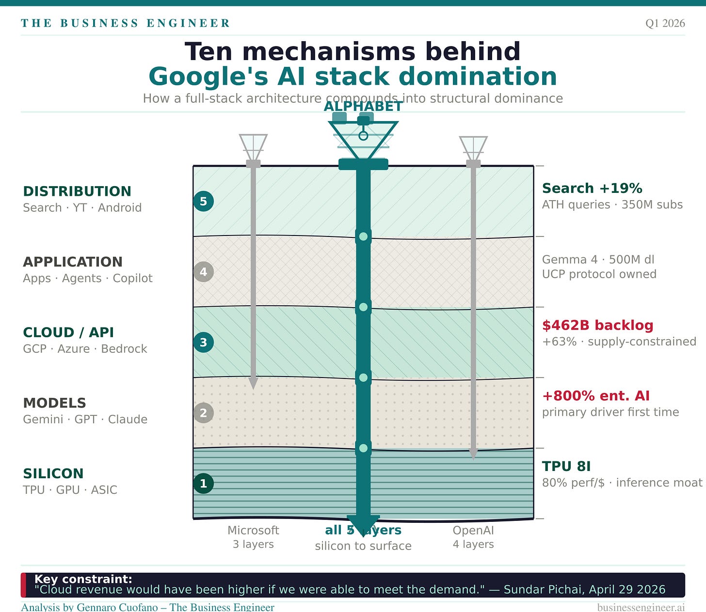 In this analysis, instead, I’ll explain, piece by piece, the ten structural forces that make up Google AI stack.