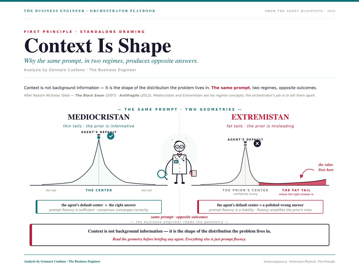 Context Is Shape — Context is not background information. It is the shape of the distribution the problem lives in. Read the geometry before briefing any agent.