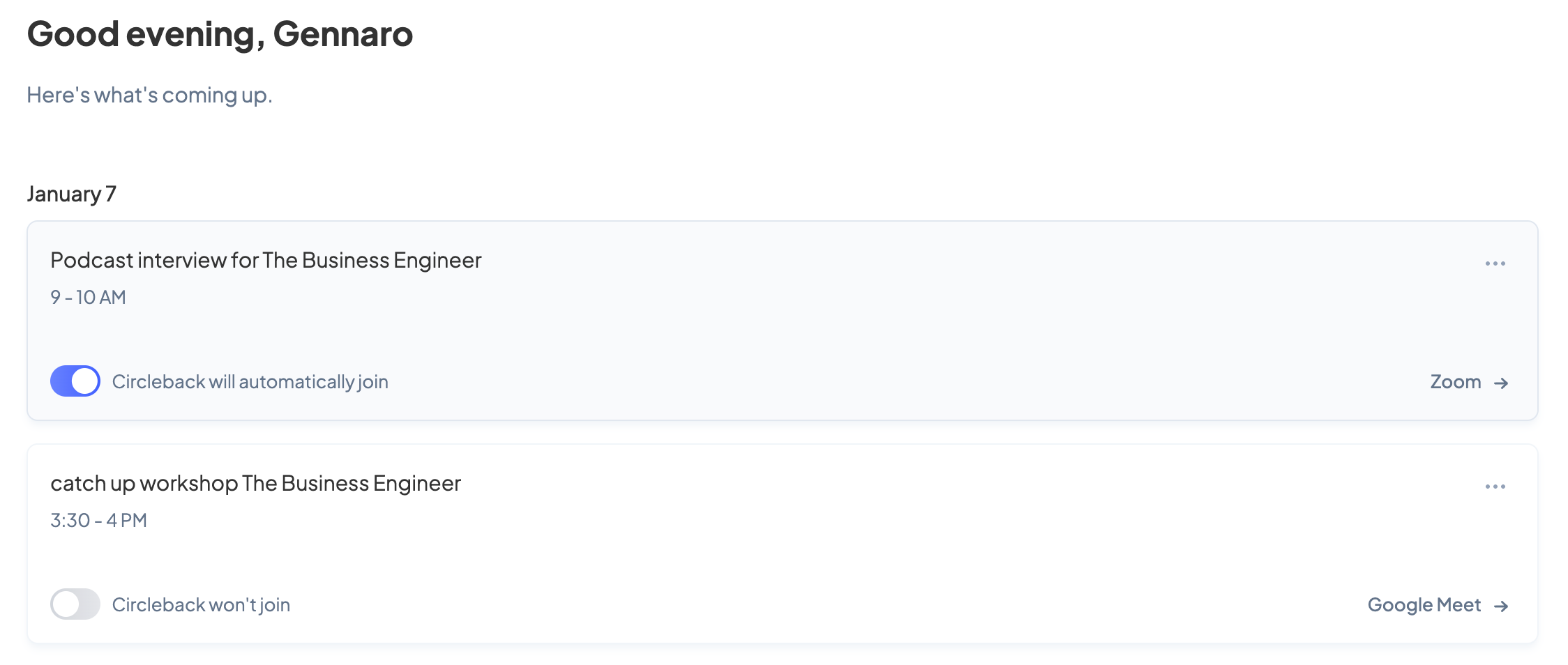 It also gives me complete control over which calls Circleback joins. At the same time, it helps me stay on top of my agenda through seamless integration with the most popular video meeting platforms.