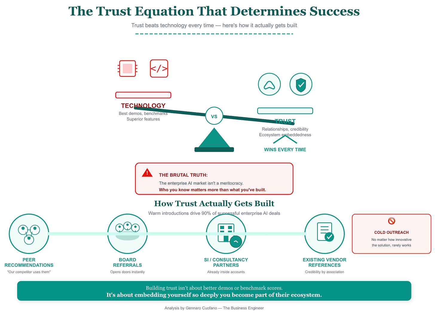 Building trust in the enterprise isn’t about having the best product demos or the most impressive benchmark scores. It’s about embedding yourself so deeply into existing relationships that you become part of the enterprise’s extended ecosystem.