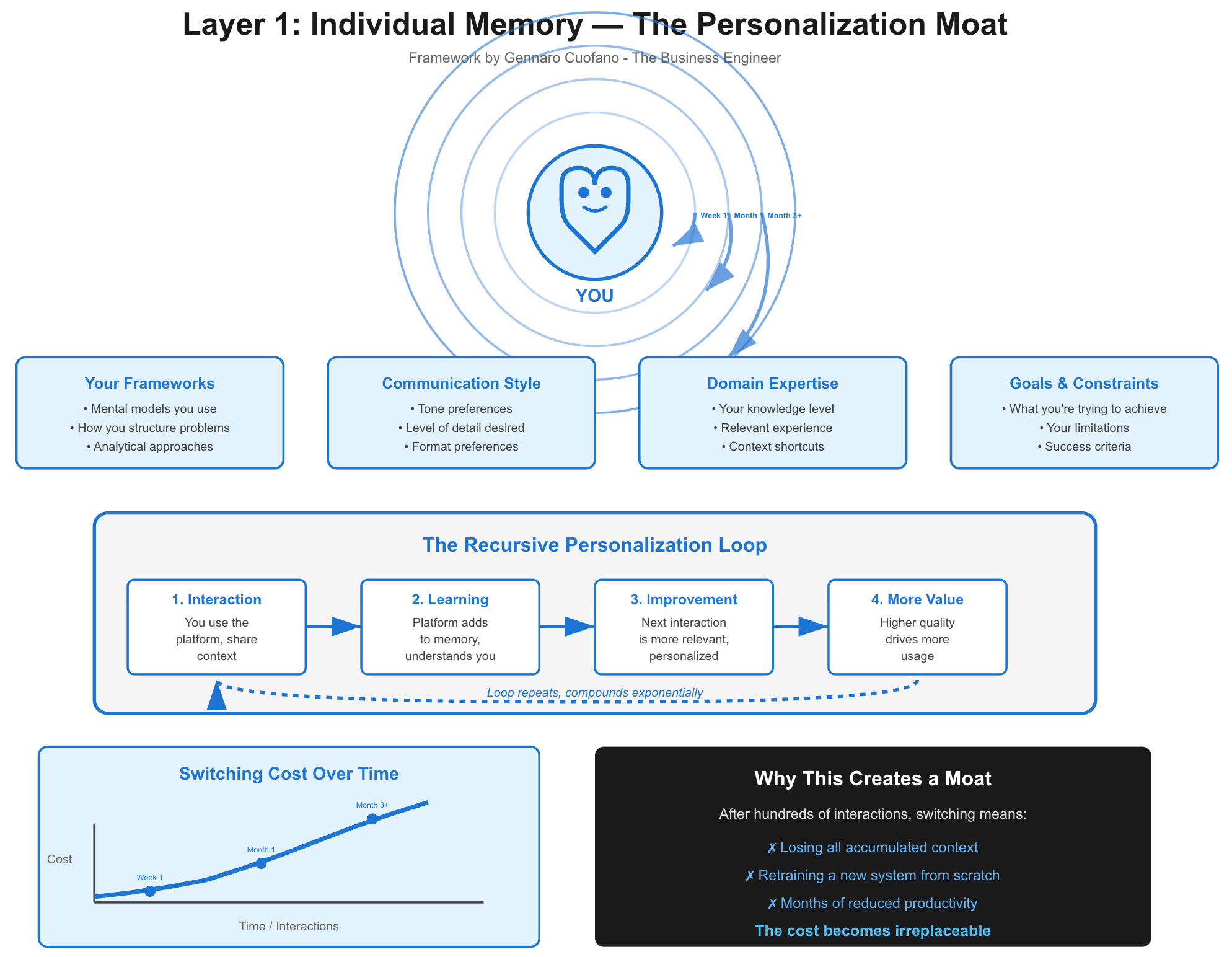 This isn’t about recommendation algorithms or behavioral tracking—the old platform tricks. This represents a fundamental shift in how value compounds. The new platforms don’t just respond to users. They remember, reason, and evolve with them.