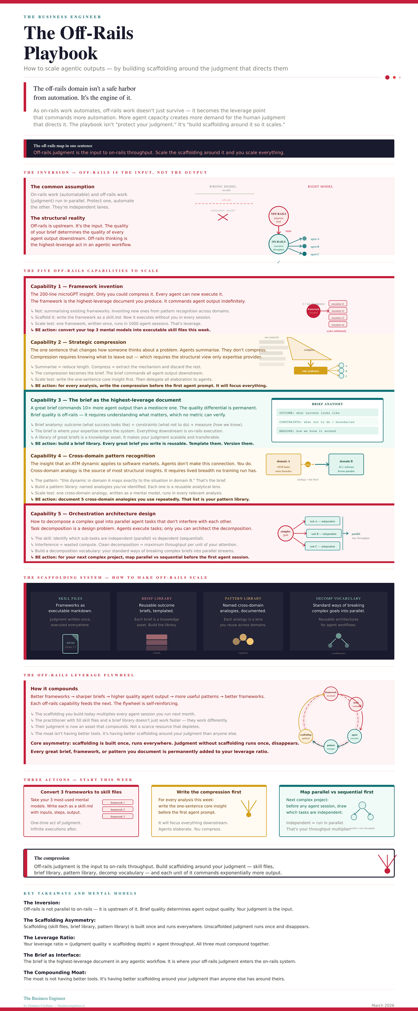 Most practitioners who understand the on-rails/off-rails distinction treat the off-rails side as a list of things to protect rather than a system to build. The result: judgment exercised in a session that ends, insight produced that doesn’t compound, expertise that depletes rather than accumulates.