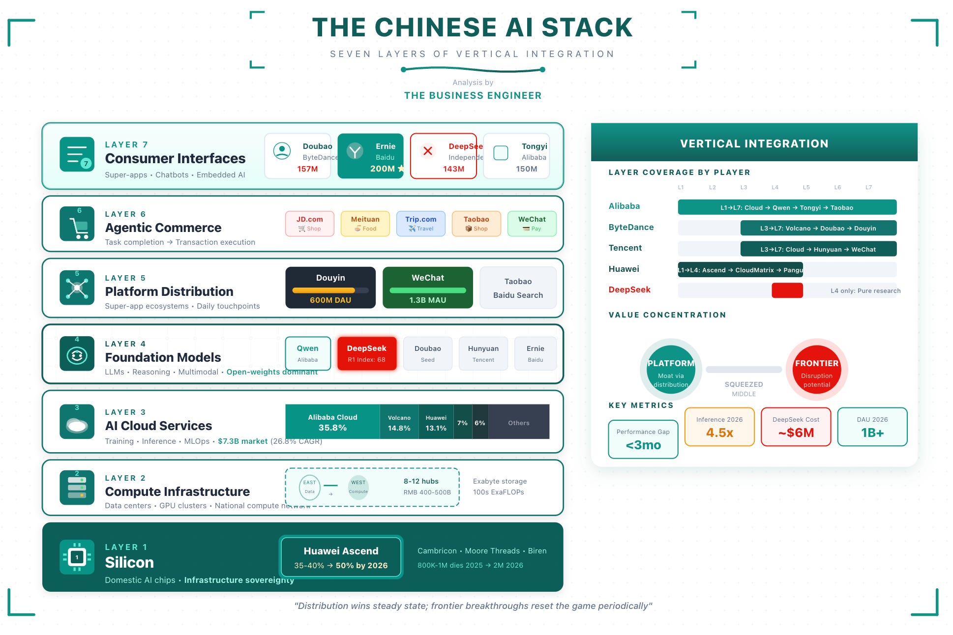 While US AI is characterized by frontier-model competition between a handful of well-funded labs, China has built a parallel system optimized for deployment velocity, ecosystem integration, and infrastructure-native AI that embeds directly into commerce, services, and industrial applications.