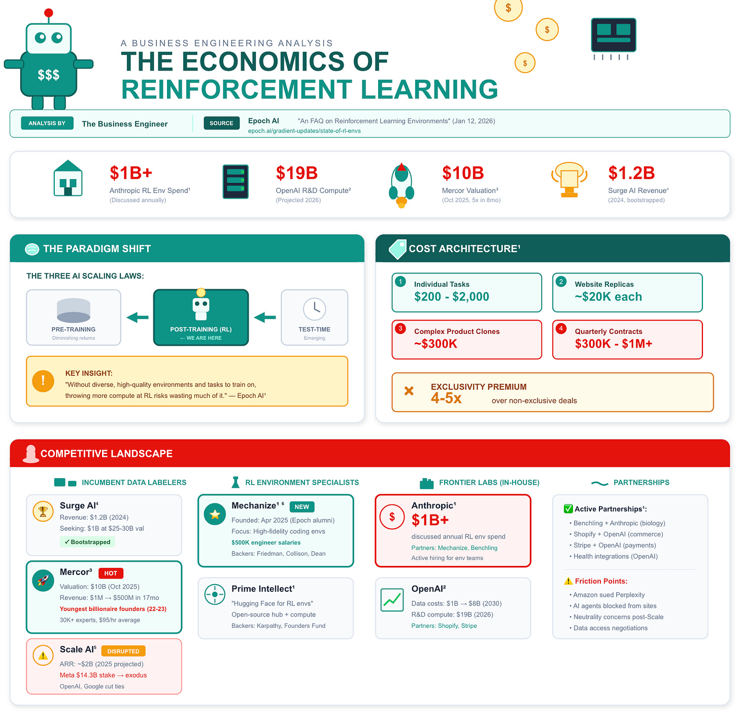 With Anthropic discussing $1B+ annual spending on RL environments and OpenAI projecting $19B in R&D compute for 2026, a new market layer is crystallizing between raw compute and model capabilities.