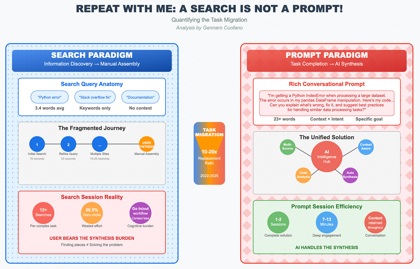 Search ≠ Prompt: a session in Google ≠ a task in AI.