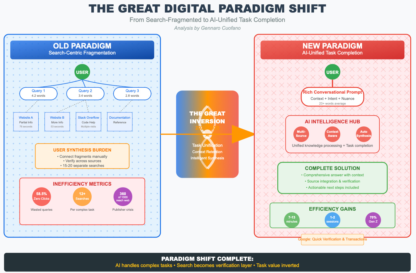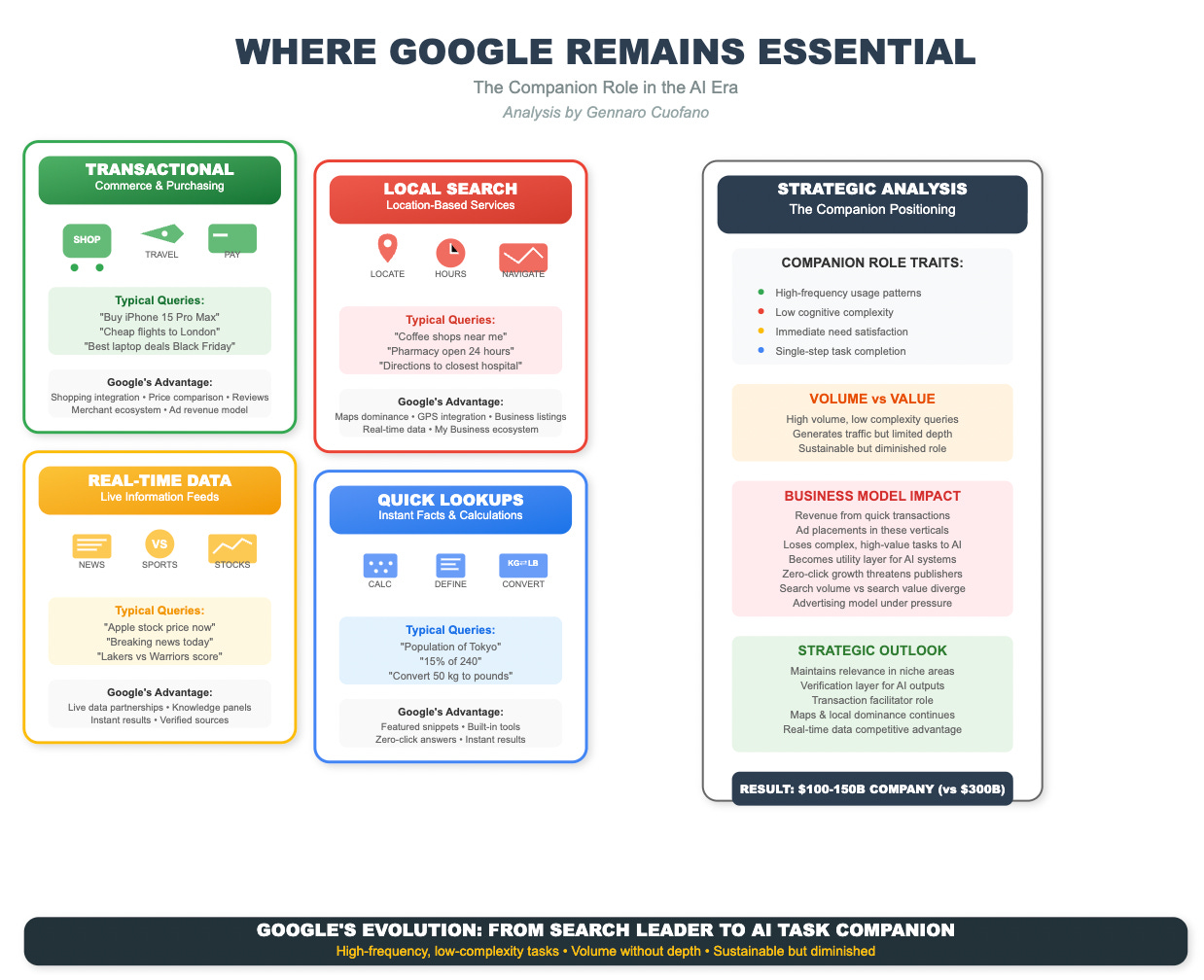 AI now absorbs the high-value, complex tasks Google never fully managed, relegating Google to the task completion companion role.