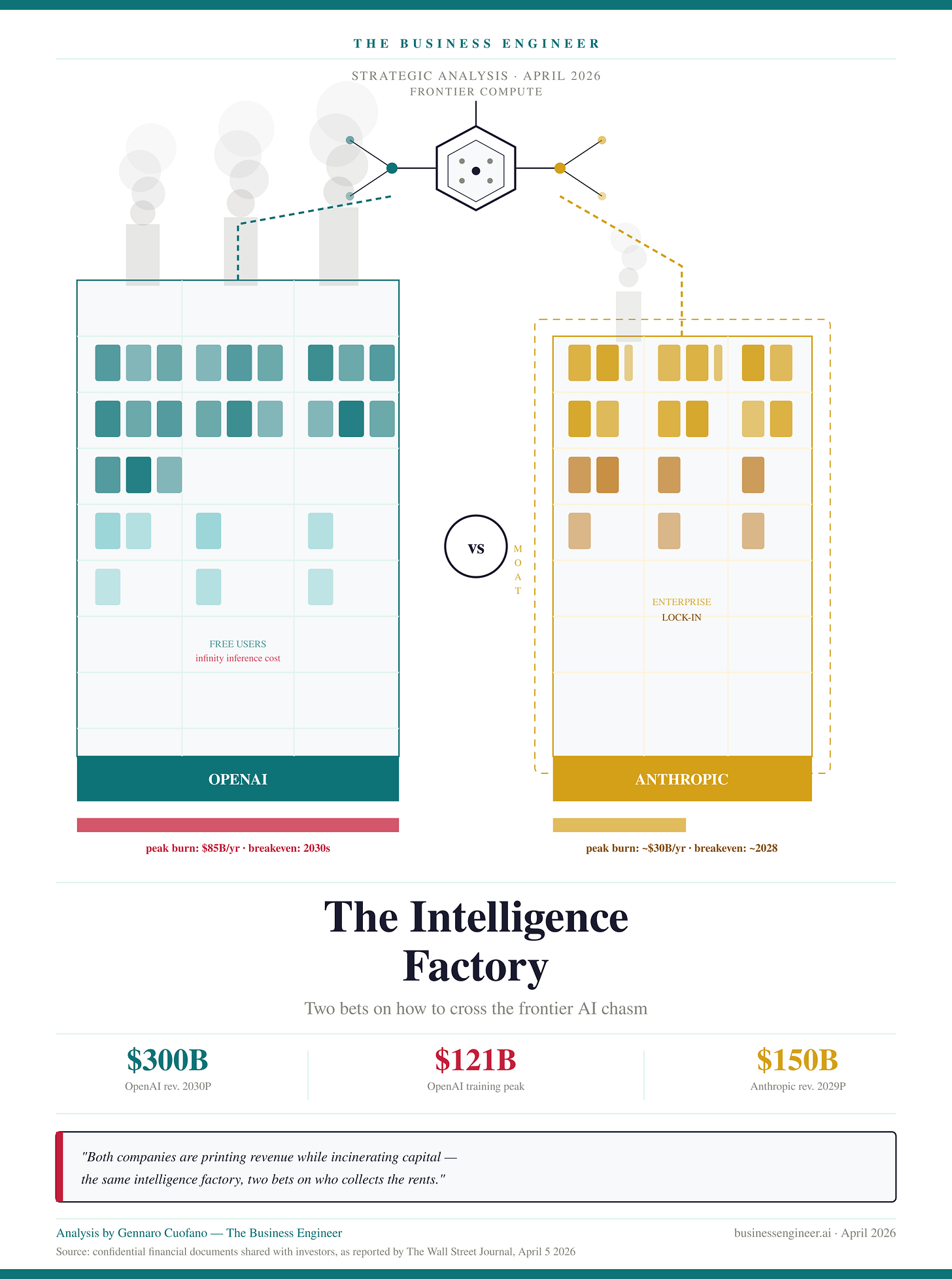 But the more important story isn’t the raw numbers. It’s the structural divergence between two companies that appear to be in the same business — building frontier AI models — but are executing two fundamentally different bets on how to survive, scale, and eventually dominate.