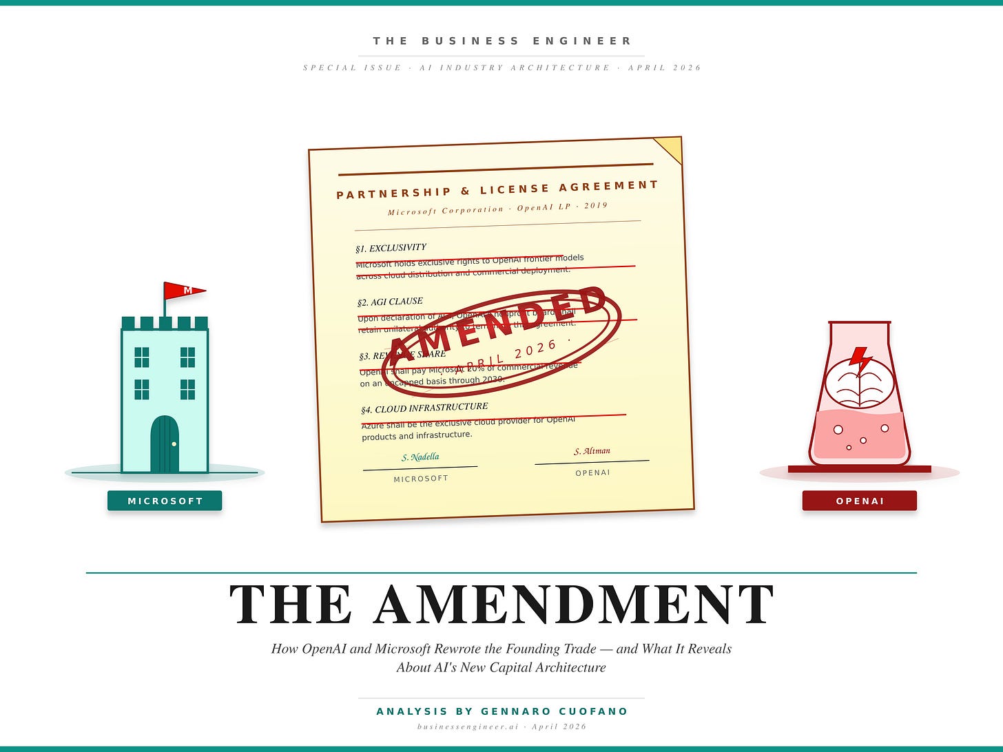 In October 2025, Microsoft and OpenAI architected a coopetition protocol. In April 2026, they finalized it. The amendment announced this week doesn’t extend the partnership; it prices it.