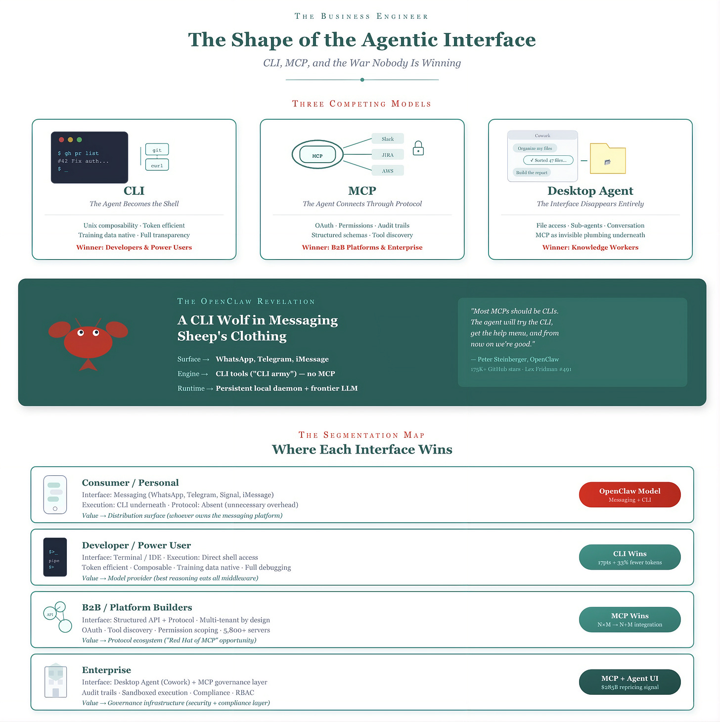 The debate between CLI and MCP isn’t a technical argument. It’s a structural question about where value accumulates in the agentic economy, and the answer fractures sharply depending on whether you’re building for developers, platforms, or enterprises.