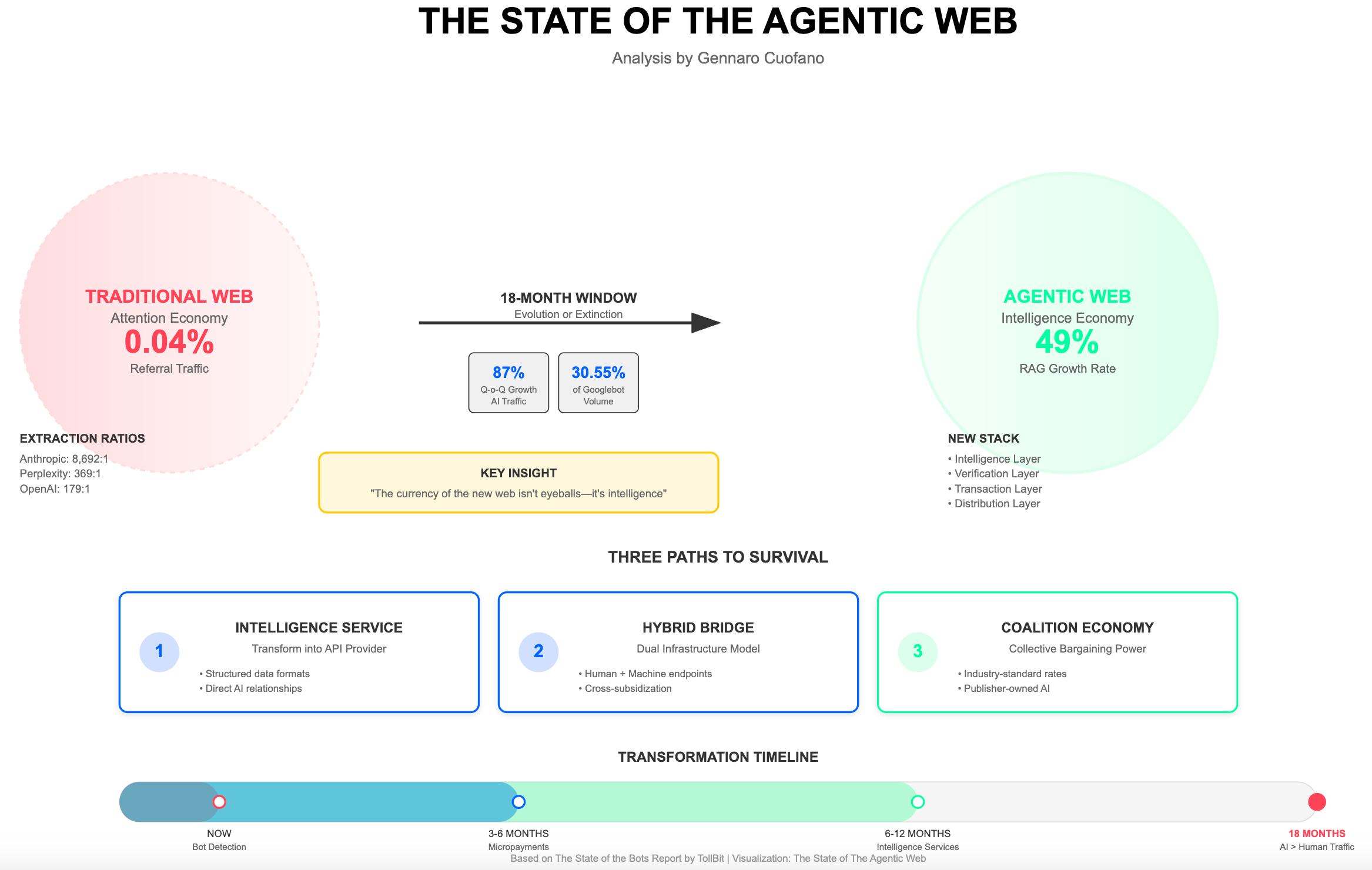 The latest State of the Bots report from TollBit reveals a stark truth: we are witnessing the violent death of the traditional web's economic model and the emergence of an entirely new digital economy.