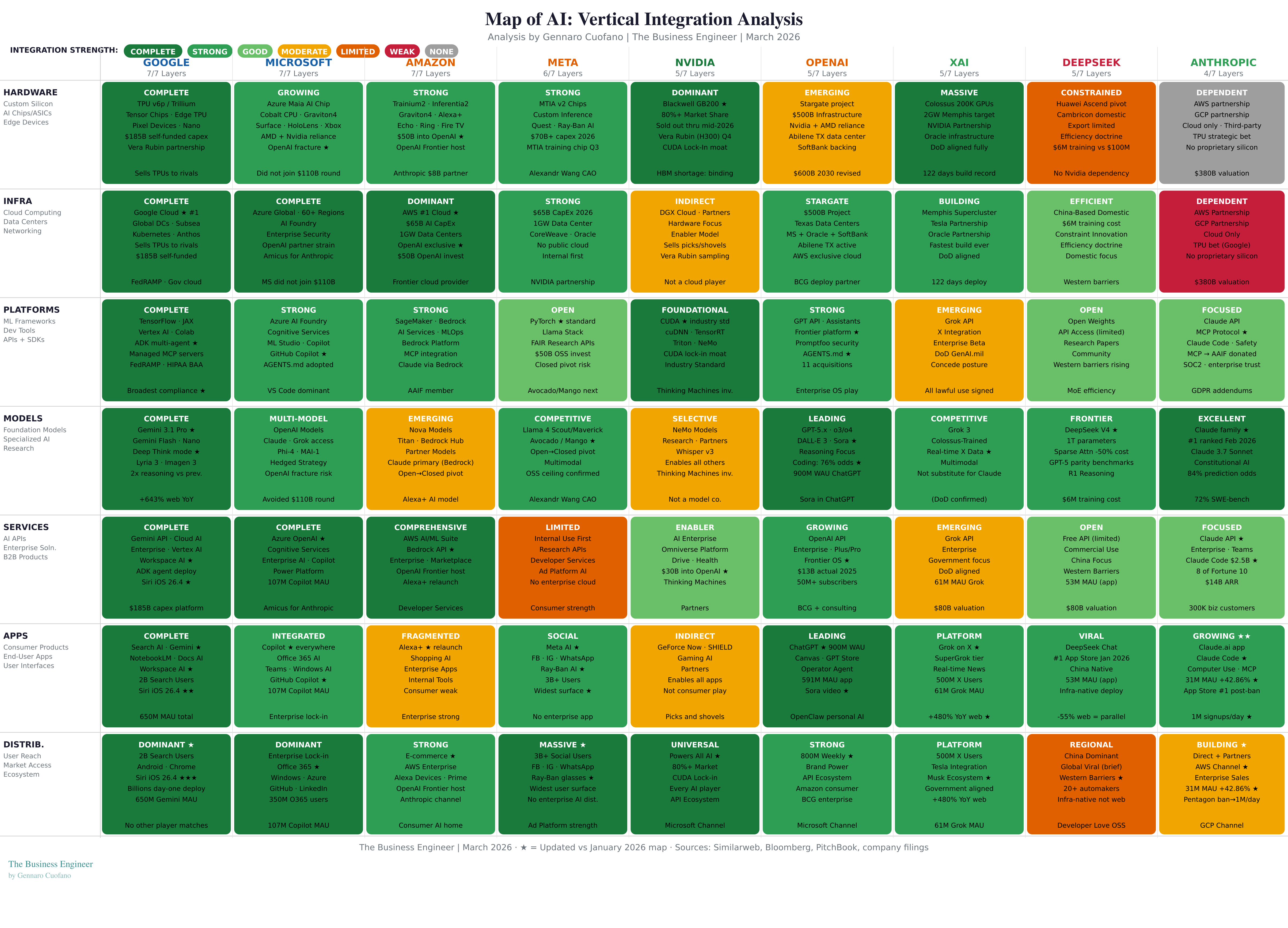 As we reach mid-March 2026, the AI landscape has become more structurally legible than at any prior point. The model race is secondary. Five races are running simultaneously: infrastructure, distribution, agentic stack, enterprise capture, and governance. What follows is the complete updated map — every major player, every signal, every structural implication.