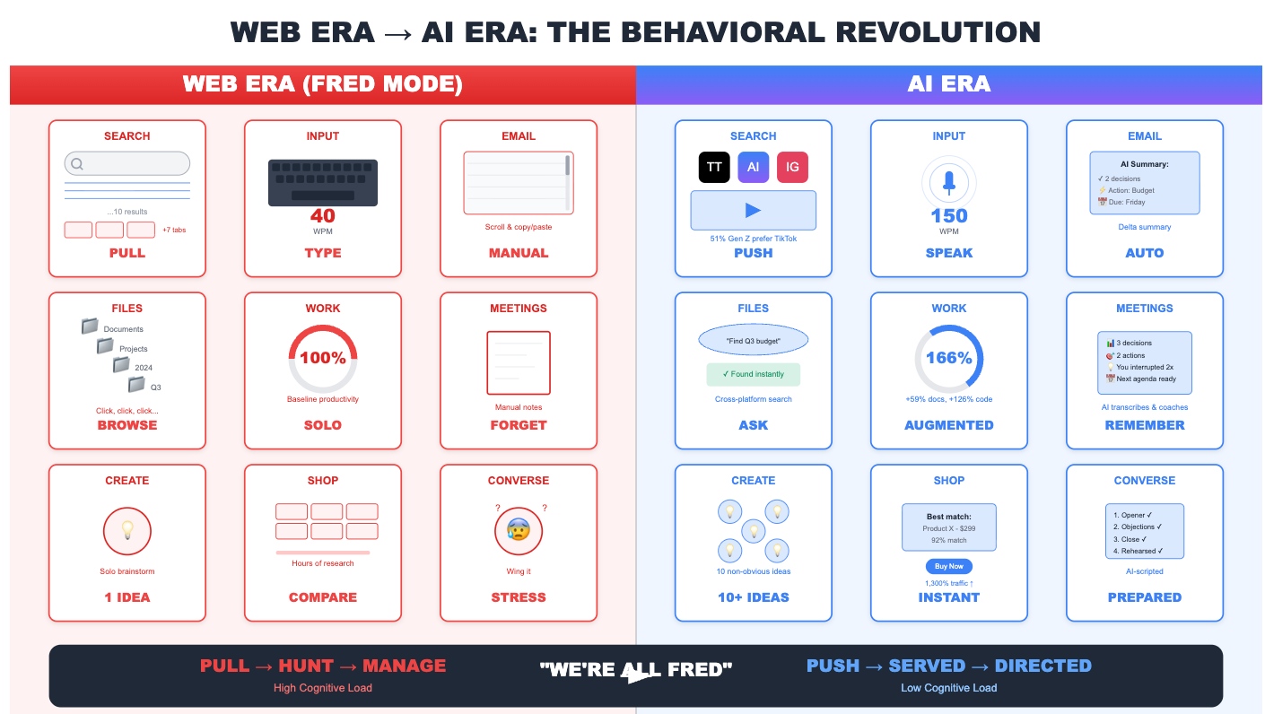 Brice Challamel, Head of AI at Moderna, captured this perfectly with the story of "Fred"—a manager who hand-wrote email replies on printouts for his assistant to re-type. We laugh at Fred. Then we realize: in the age of AI, we're all at risk of being Fred.