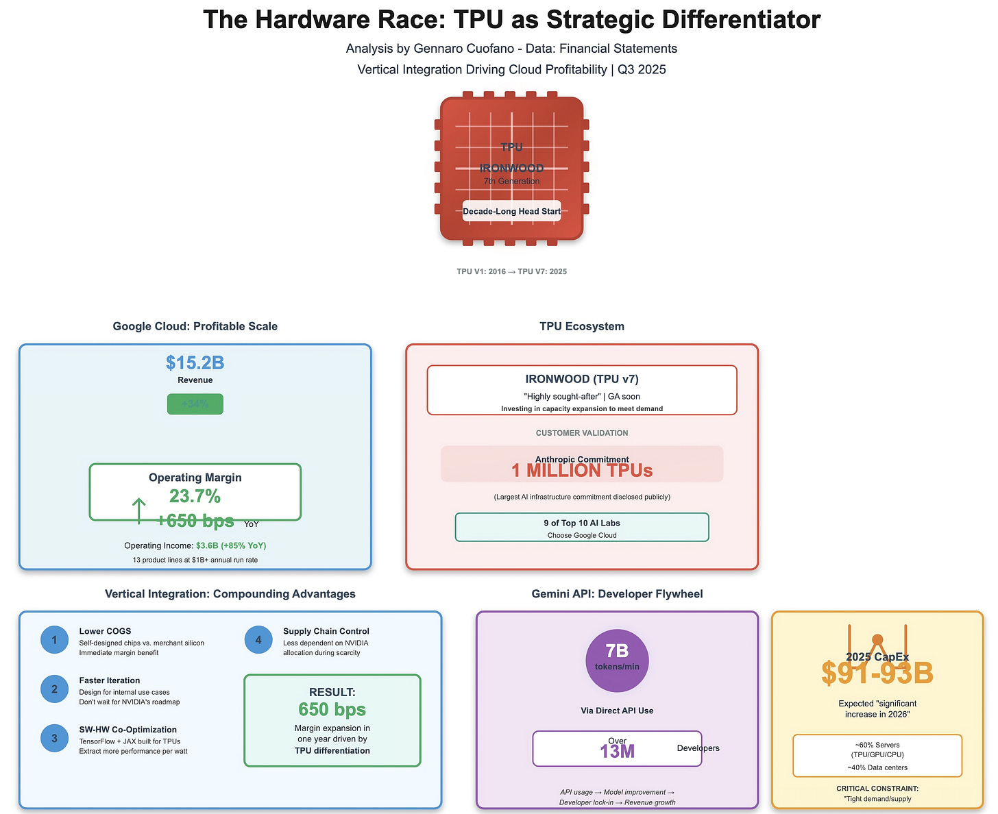Cloud compounding: strong growth and margin lift; TPUs plus NVIDIA hedge; capex supercycle aligned to AI.