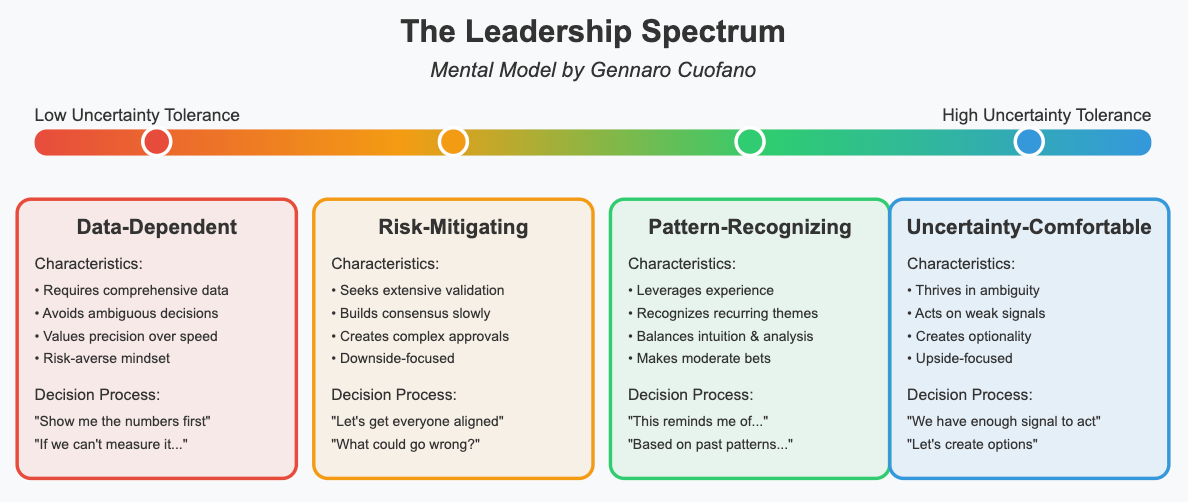 Leadership approaches uncertainty fall along a spectrum that directly impacts an organization's ability to capitalize on emerging opportunities: